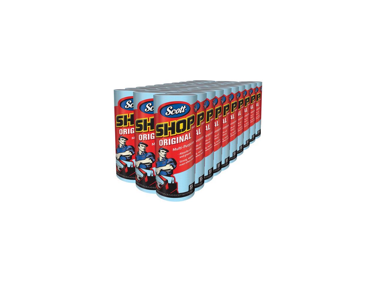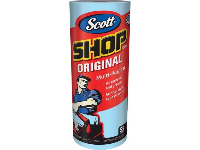 - 55 Towels/Roll; 30 Scott Shop Towels Original Rolls/Case; 1,650 Towels/Case; Blue. The portable standard roll format fits on standard paper towel dispensers and comes perforated, so you can always get what you need.