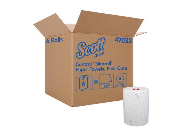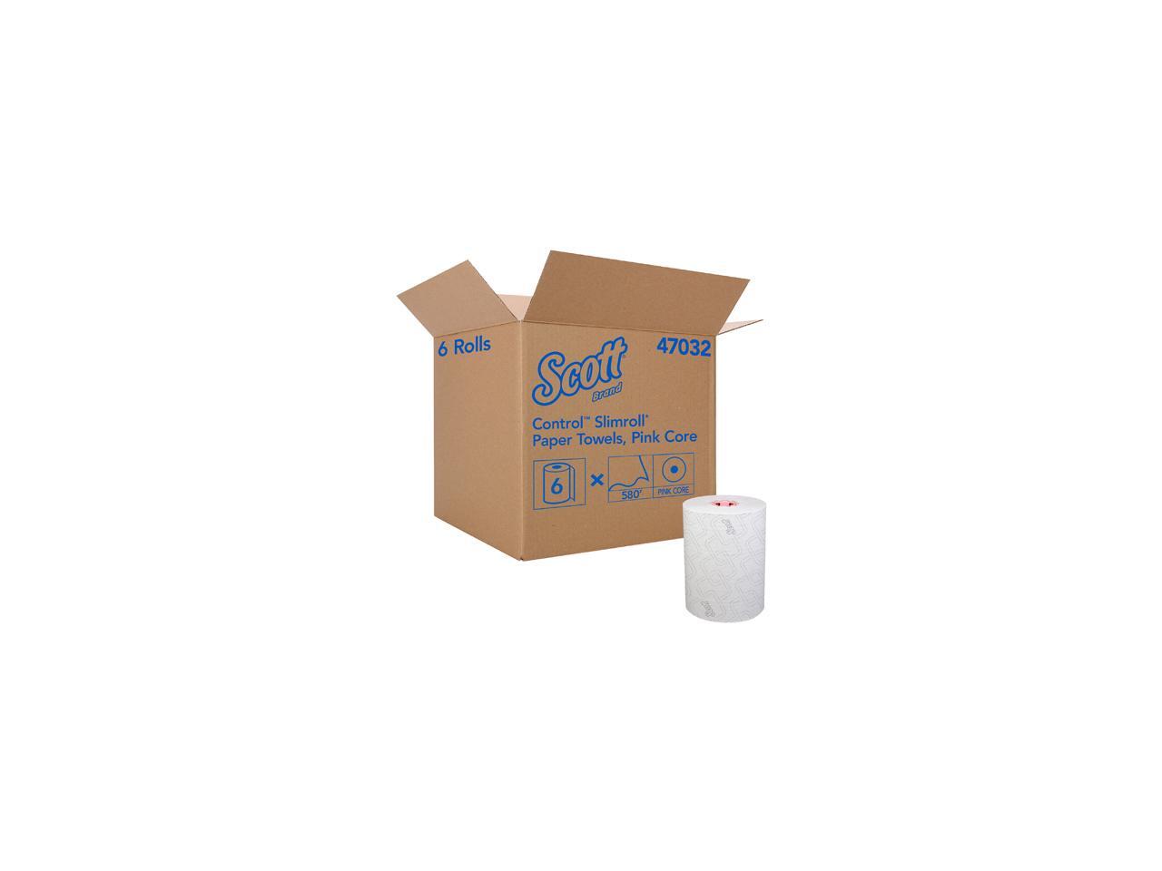 Scott Control Slimroll Hard Roll Paper Towels (47032) for Slimroll Dispensers (Pink Core), Fast-Drying Absorbency Pockets, White, 6 Rolls / Case, 580' / Roll, 3,480' / Case