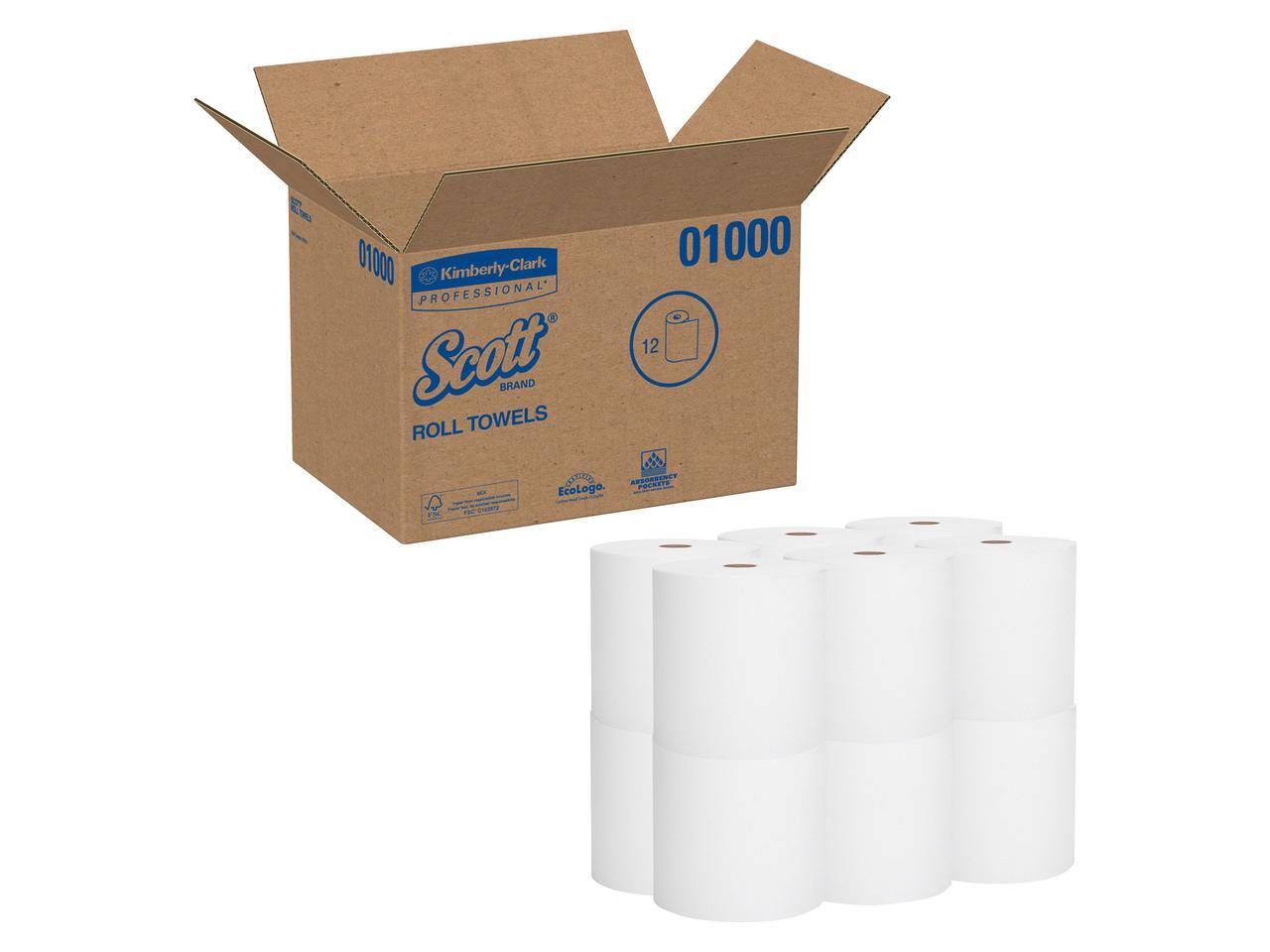 Scott Essential High Capacity Hard Roll Towels for Business, Absorbency Pockets, 1.5" Core, 8" x 1,000 ft, White, 12 Rolls/Carton KCC01000