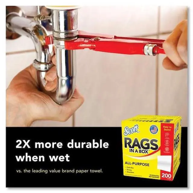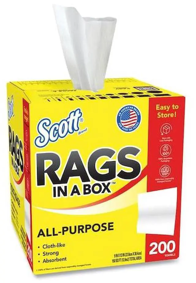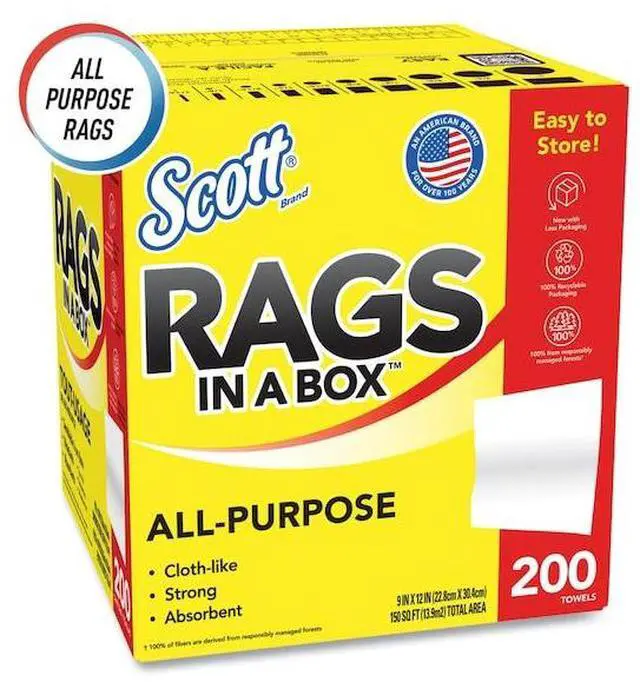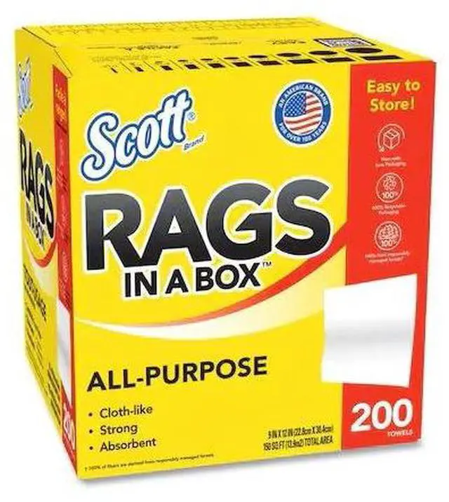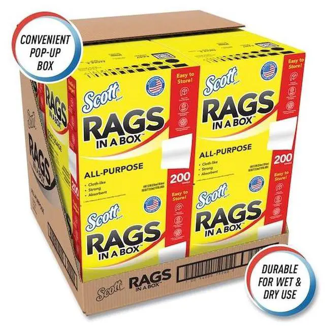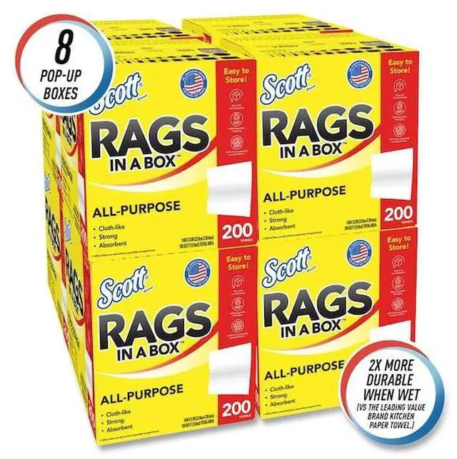 Whether you're cleaning around the home, at work or on the go, you can trust Scott® Rags In A Box to help you get the job done right. 2X more durable when wet (vs the leading value brand kitchen paper towel), Scott® Rags In A Box are strong and absorbent, making them ideal for absorbing spills, wiping up grease and grime and cleaning up after home improvement projects. Disposable for a clean towel every time, Scott® Rags In A Box feel and perform like a cloth and are soft enough to use on your face and hands (not for use on compromised skin or open wounds). The Pop-Up Box includes a built-in handle for easy portability, allows for easy dispensing and keeps the disposable rags clean until you need them. No matter what or where you're cleaning, use cloth-like Scott® Rags In A Box for a clean you can trust!