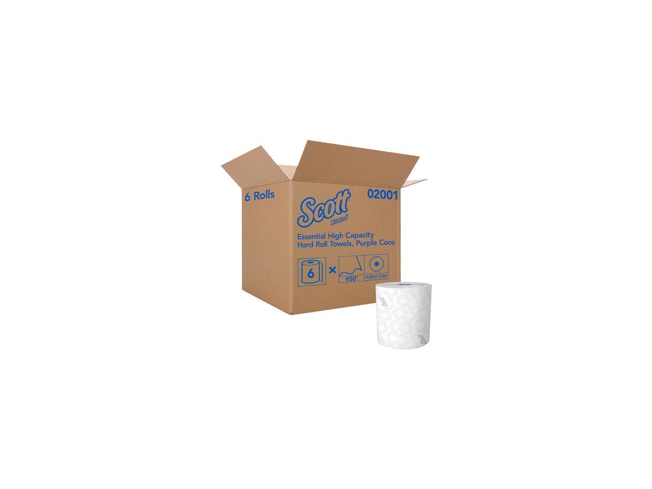 Scott Essential High Capacity Hard Roll Paper Towels (02001) with Absorbency Pockets, Fast Change with Scott Essential Dispenser, Unperforated, White, 950' / Roll, 6 Rolls / Case, 5,700' / Case