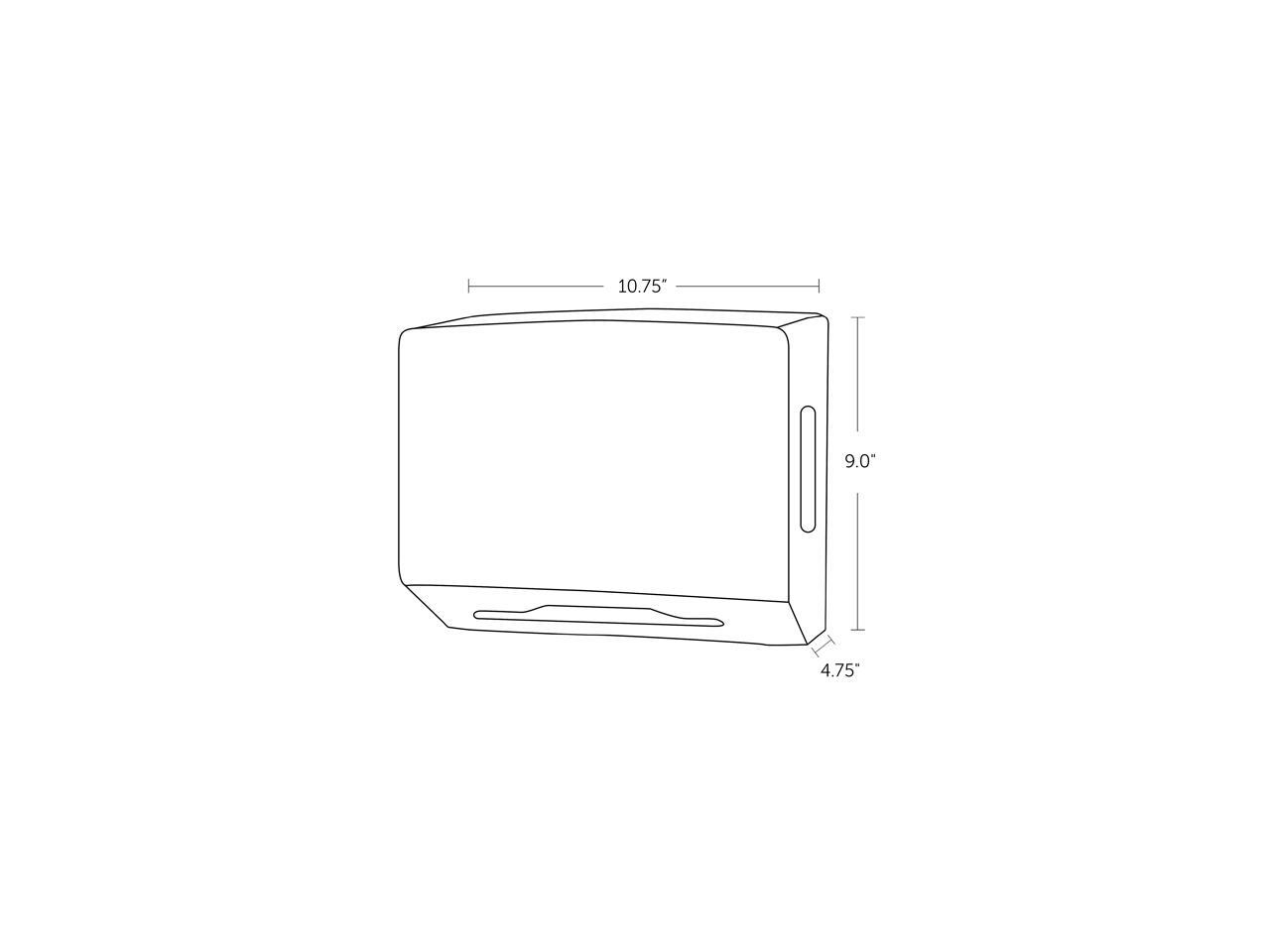 The Scottfold Compact Towel Dispenser (in Smoke / Black) is designed to fit in tight spaces. It measures 10.75 x 9.0 x 4.75 inches