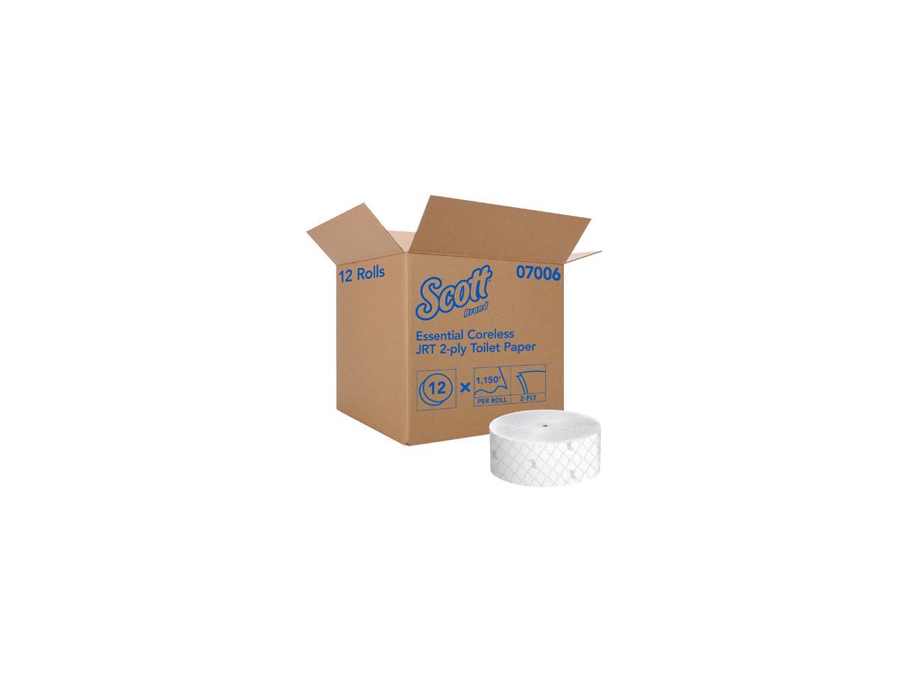 Scott Essential Jumbo Roll Coreless Toilet Paper (07006), 2-PLY, White, 12 Rolls / Case, 1,150' / Roll