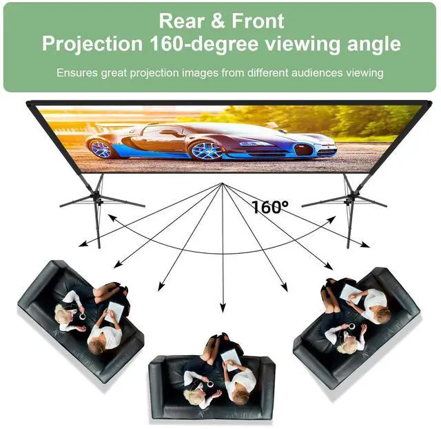 Merchant VideoThe outdoor Indoor movie projector screen with stand, you'll feel like you're in a movie theater whether you're by yourself or sharing a fun time with family and friends.Projector screen with stand, for home theater, schools, offices, weddings, church,education, conference room presentation