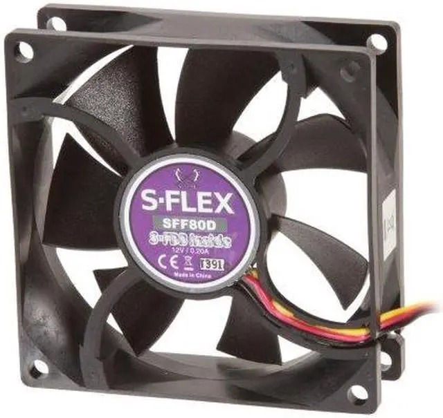 Genuine S-FDB Bearing for Ultra-Low Noise and Long LifespanThe Scythe S-Flex SFF80D is equipped with genuine S-FDB (SONY Fluid Dynamic Bearing) made by SONY corporation. S-FDB technology drastically eliminates the friction between the bearing and the shaft, which makes this fan nearly inaudible to human ears. Additional suction magnet optimizes the magnetic force balance within the rotor to achieve absolute silence. To even further achieve the absolute silence, the fan is equipped with the Linear drive IC for reducing electromagnetic noise. "S-FDB" structure also allows the fan to last up to outstanding 150,000 hours.