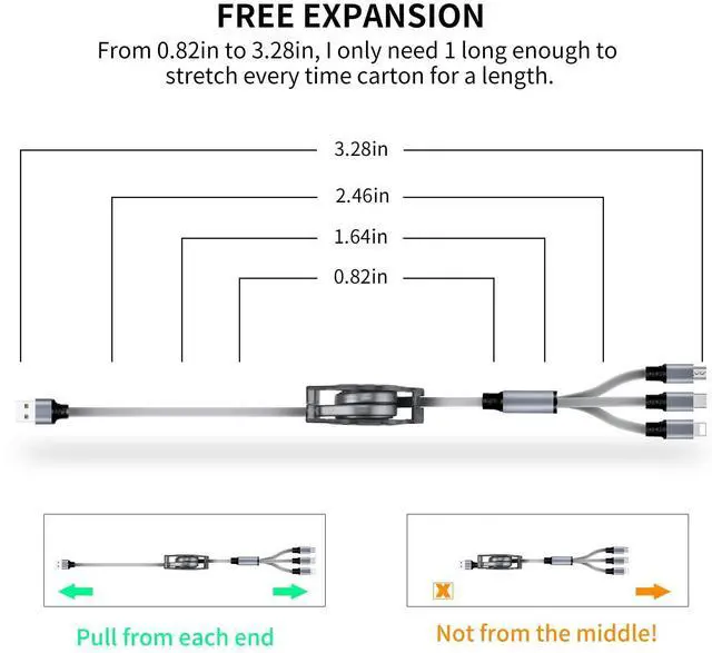 - Packing: 2 Pack × 3 in 1 Retractbale USB Cables