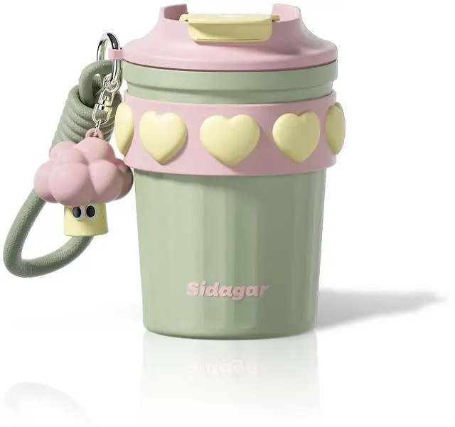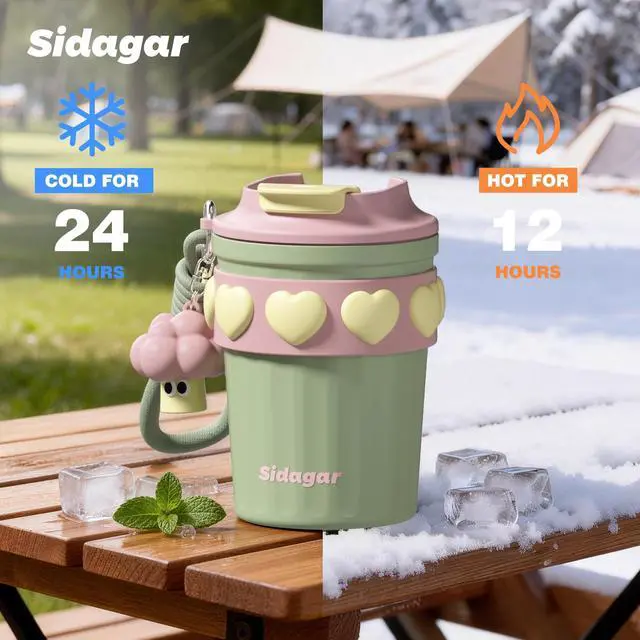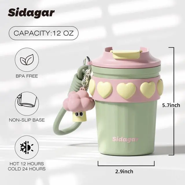 12 oz Travel Coffee Mug Spill Proof Leak Proof, Stainless Steel Thermal Coffee Cup with Lid, Resuable Cup for Hot and Cold, Portable Tumbler for Women, Green
