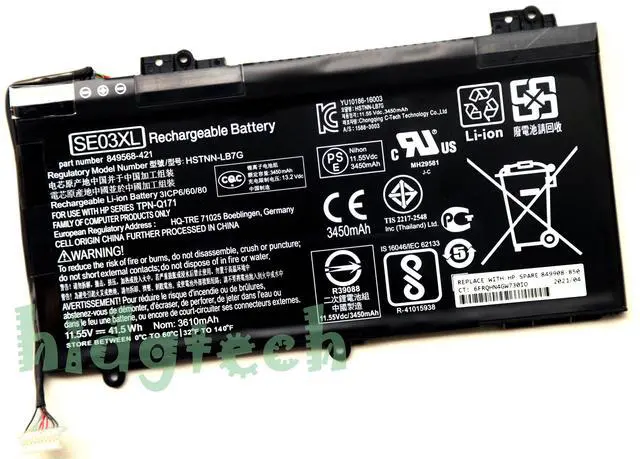 SE03XL, SE03041XL, TPN-Q171, 31CP6/60/80, HSTNN-LB7G, HSTNN-UB6Z, 849568-421, 849568-541, 849908-850, 849909-850, 849988-850