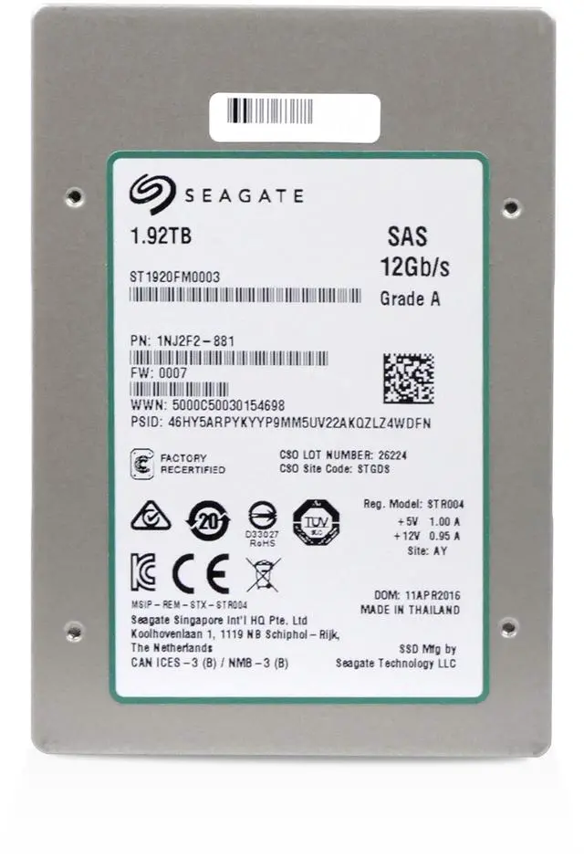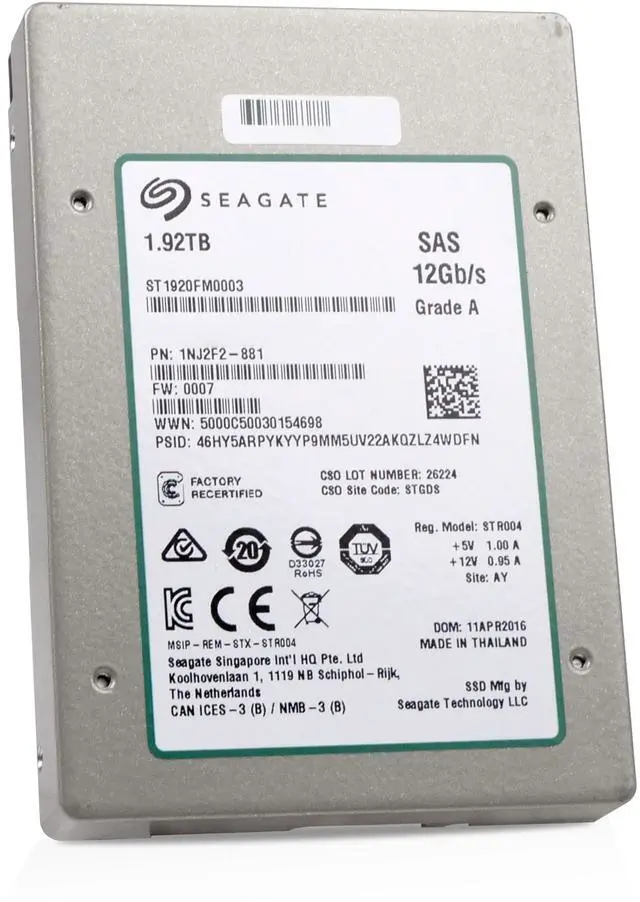 Seagate 1200.2 ST1920FM0003 1.92TB Dual SAS 12Gb/s eMLC 2.5in Recertified Enterprise Solid State Drive