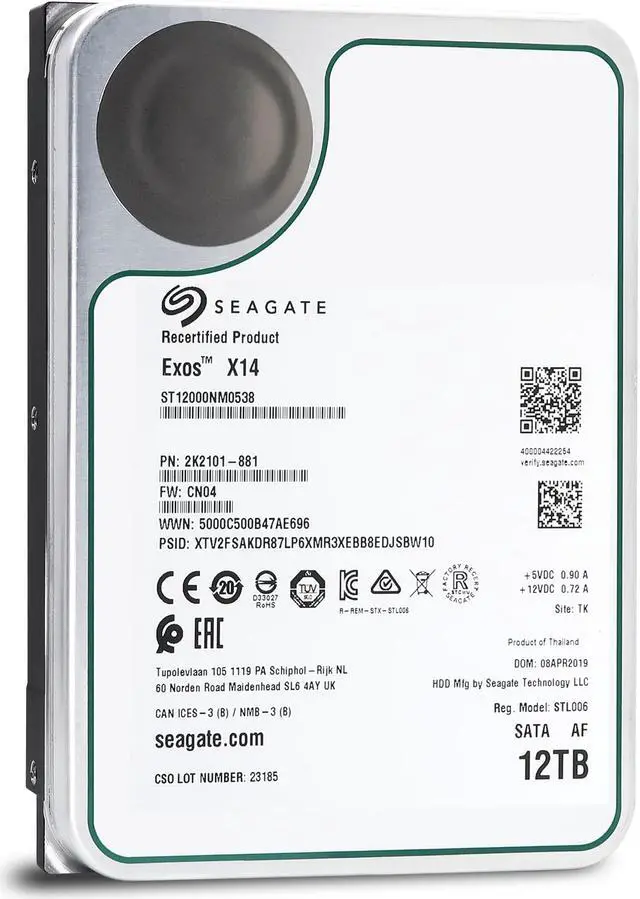 Seagate manufactures hard drives that specifically address the needs of the hyperscale storage market. As the flagship of the Seagate X class, the Exos X14 enterprise hard drives are the highest-capacity hard drives in the fleet. These drives feature digital environmental sensors for measuring internal pressure, helping to ensure high reliability, performance, and quality. They also offer PowerBalance, which is an exclusive feature that optimizes IOPS/Watts. The drives large capacity and enhanced caching make it perfect for big data applications