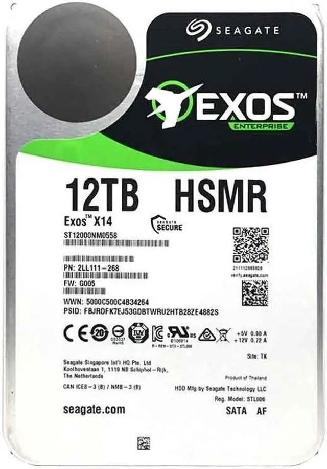 Seagate Exos X14 ST12000NM0558 12TB 7200RPM SATA 6Gb/s 256MB Cache 512e 3.5-Inch Enterprise Hard Drive - 5 Year Warranty