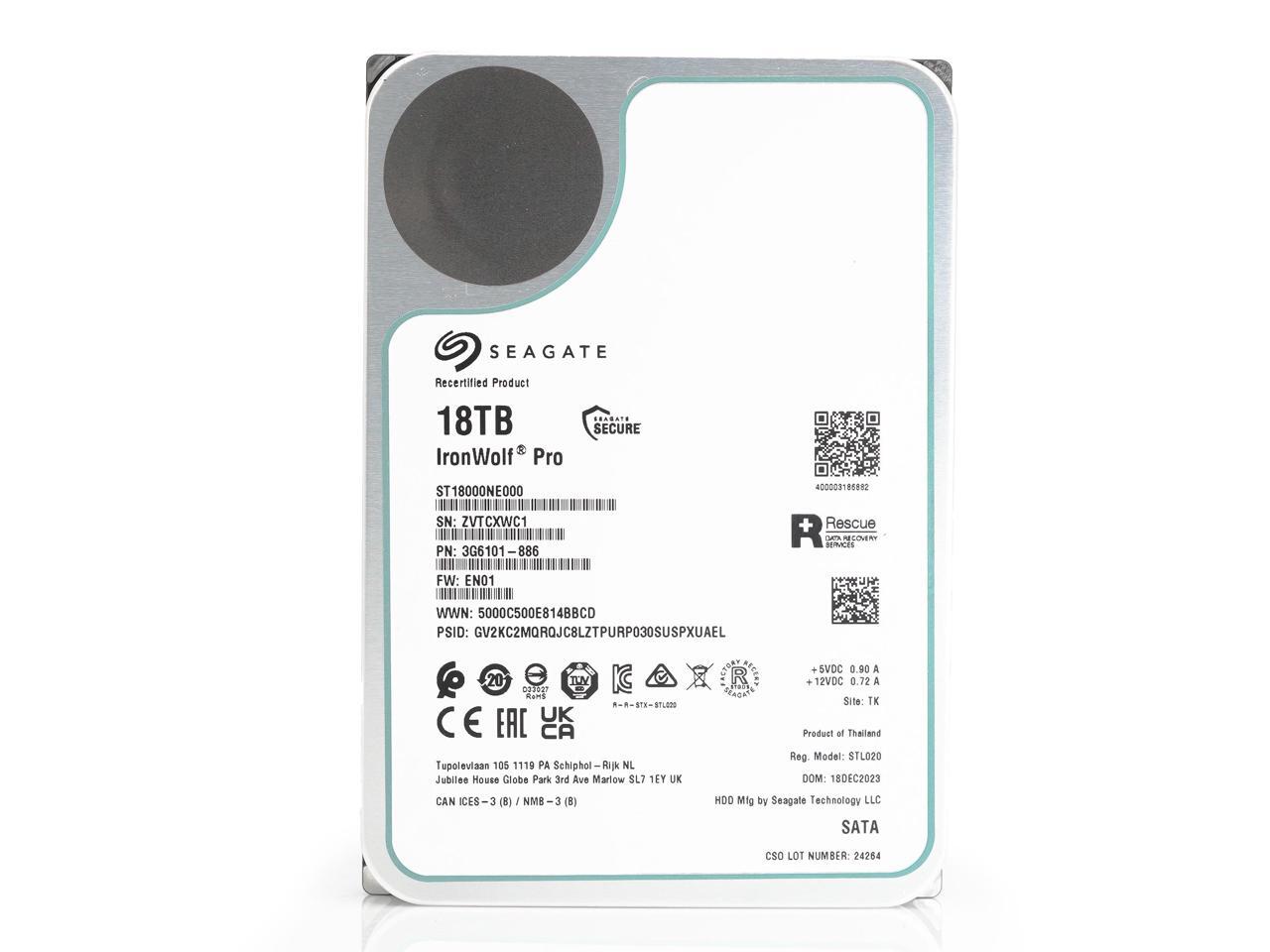 Seagate IronWolf Pro 18TB NAS Hard Drive 7200 RPM 256MB Cache CMR SATA 6.0Gb/s 3.5" Internal HDD ST18000NE000
