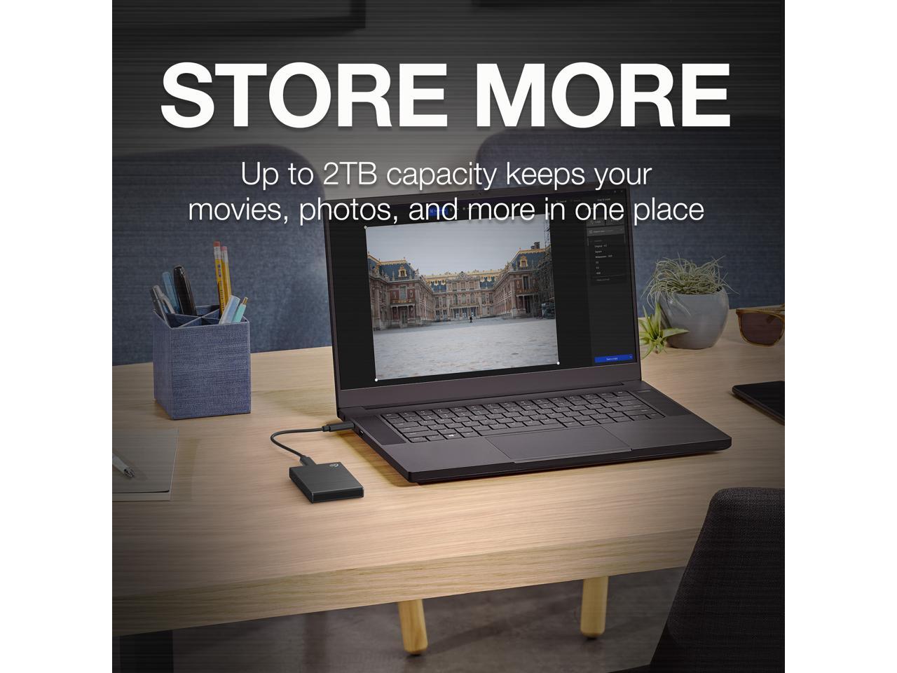 Seagate One Touch SSD 2TB External SSD Portable - Black, Speeds up to 1030MB/s, with Android App, 1yr Mylio Create, 4mo Adobe Creative Cloud Photography Plan and Rescue Services (STKG2000400)