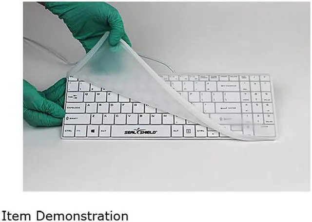 Cleanwipe medical grade-waterproof antimicrobial low profile chiclet style 2.4ghz wireless keyboard w/ keyboard cover ansi-us english-qwerty detachable white usb power cable (white base white key caps w/ black lettering)