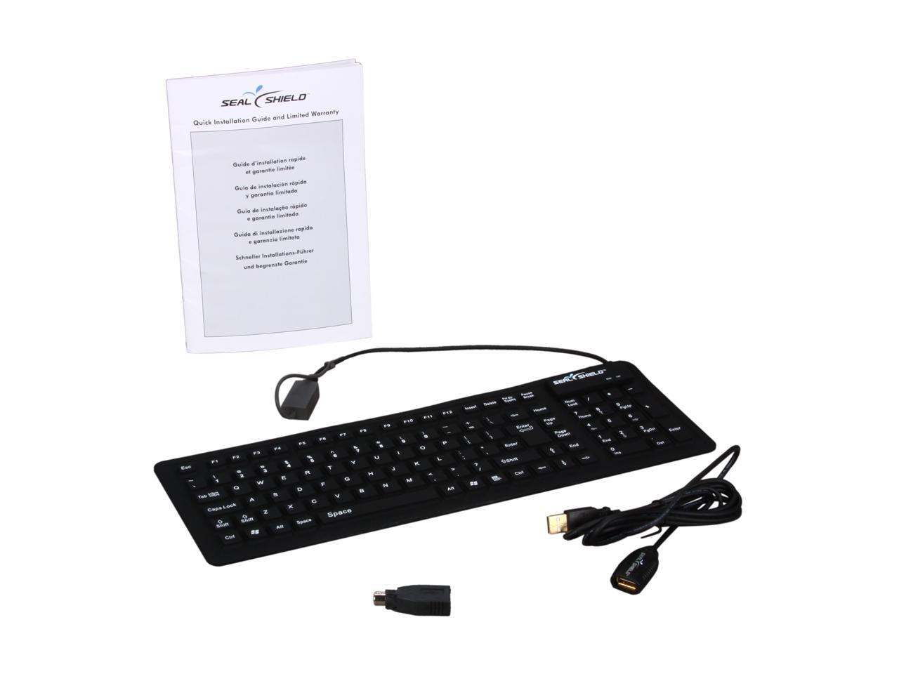 SEAL SHIELD SSF106 Black USB Wired Slim SEAL FLEX Silicone Keyboard - Dishwasher Safe