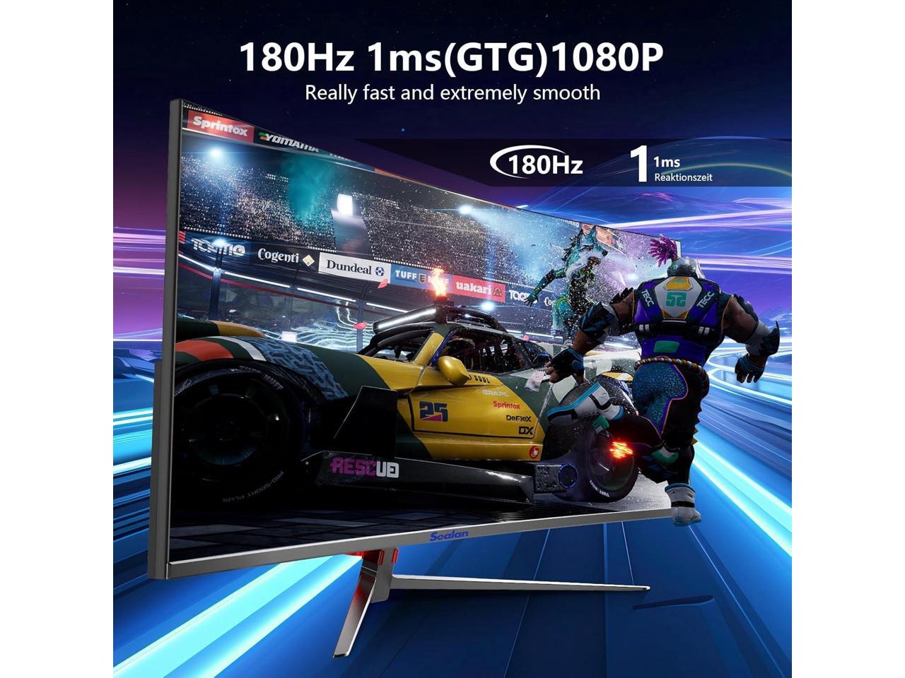Sealan 27 inch Curved Gaming Monitor 180Hz Full HD 1080P, 1800R, Computer Monitor Display with FreeSync & Eye-Care Technology, Support VESA 100x100 mm, DP, HDMI Ports, VA Panel for Gaming/Home/Office