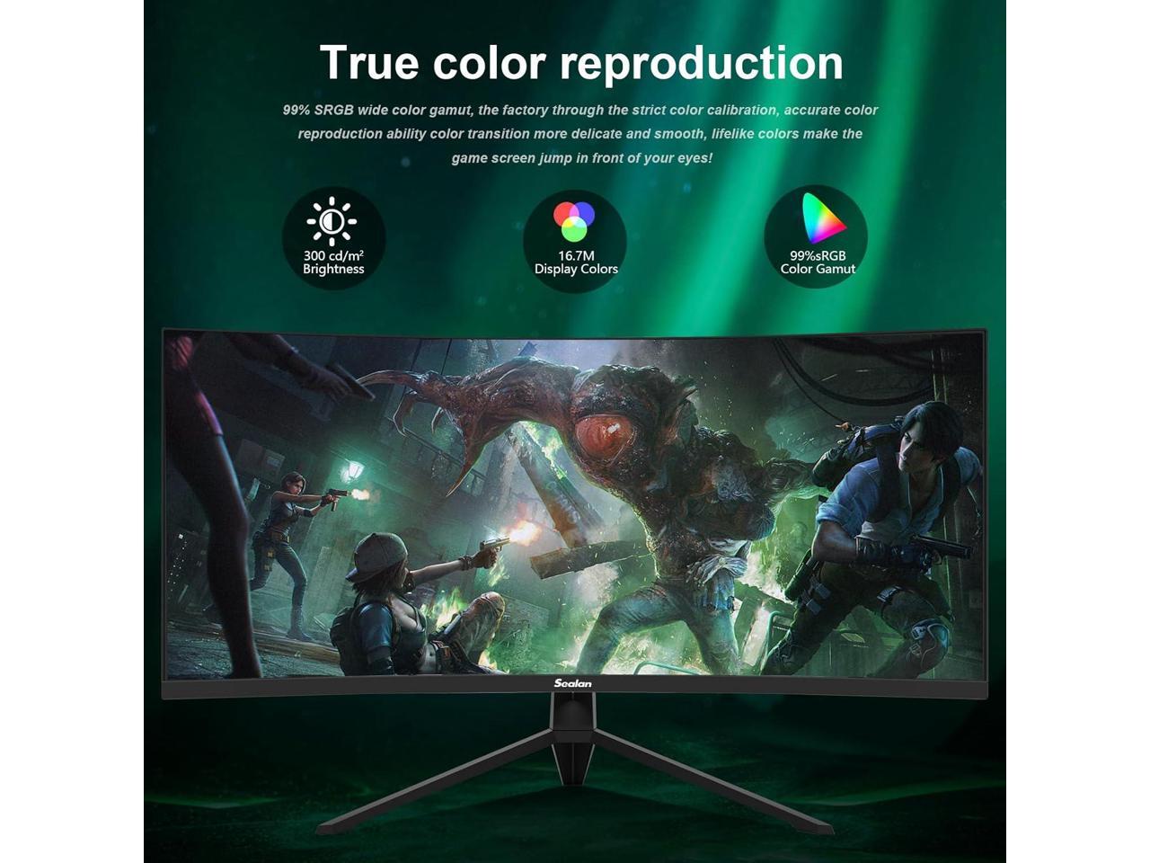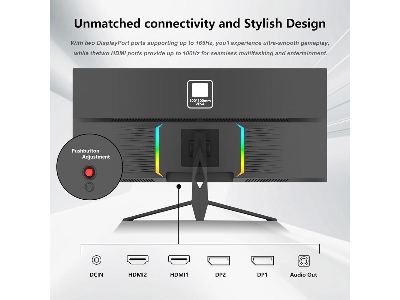 Sealan 34 Inch Ultrawide Curved Monitor Gaming, 1500R, WQHD 3440x1440p (4K), 165Hz Monitor with RGB Backlight,PIP/PBP,127% sRGB,Crosshair/Timer/FPS/RTS, FreeSync HDMI 2.0 x2 & DP1.4 x 2, VESA 100mm