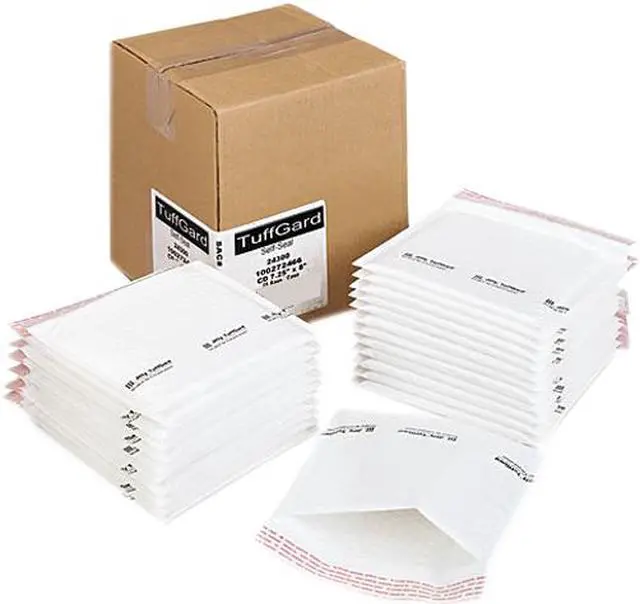 Cushioned CD/DVD mailer is puncture-resistant, tamper-resistant and water-resistant with textured, poly outer film for secure label application. Heat-Seal seams won't burst. Inside, lightweight, Barrier Bubble layer delivers superior protection of jewel cases. Cushioned mailer offers easy closure. Simply peel away the liner and seal.