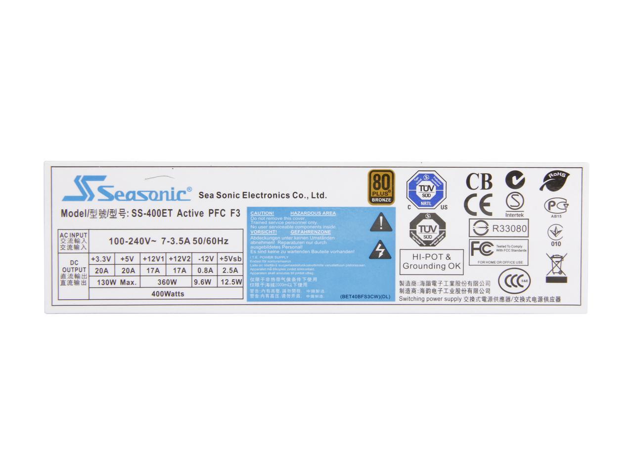 ATX12V and EPS12V CompatibleCompatible with the ATX12V v2.2 and EPS12V2.91 standards, the SeaSonic SS-400ET provides maximum power stability to drive the processors as well as other components for desktop and server computer systems.