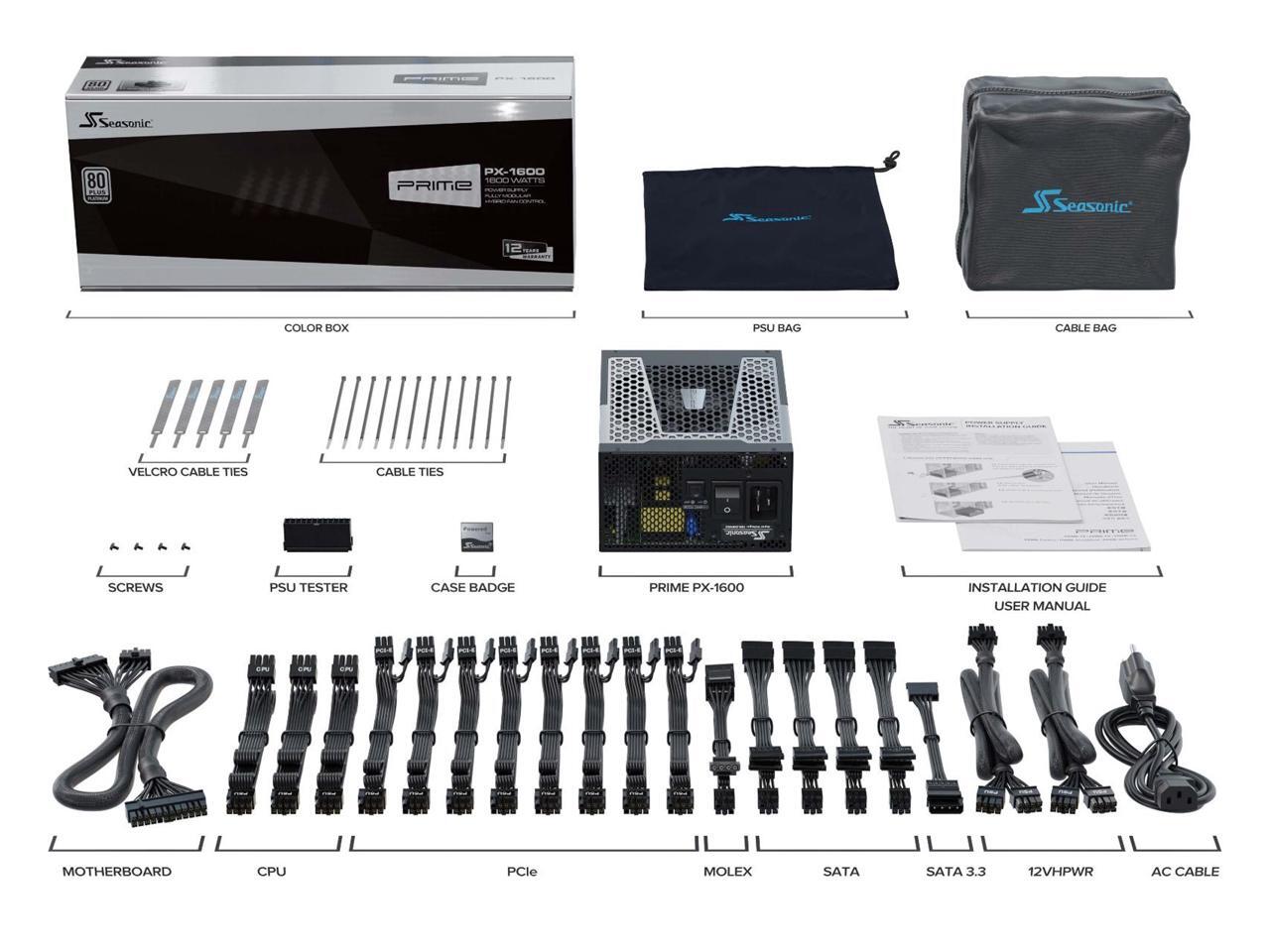 Seasonic PRIME PX-1600, 1600W 80+ Platinum, Full Modular, Fan Control in Fanless, Silent, and Cooling Mode, Perfect Power Supply for Gaming and High-Performance Systems, SSR-1600PD