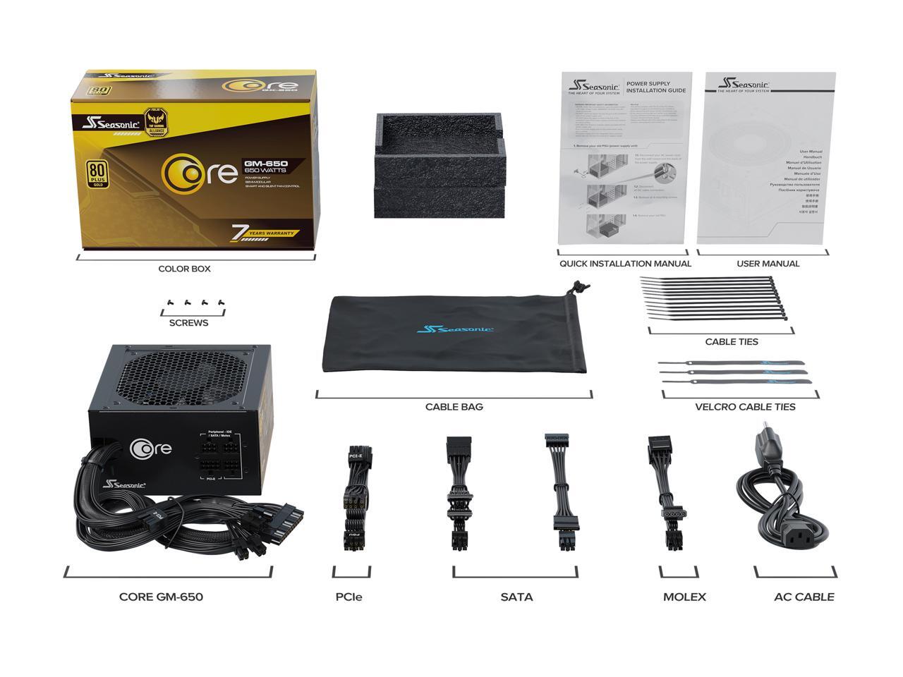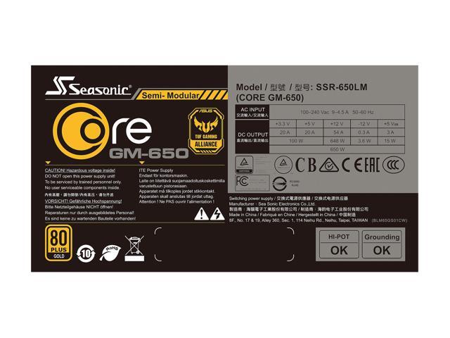 Seasonic CORE GM-650, 650W 80+ Gold, Semi-Modular, Fan Control in Silent and Cooling Mode, Perfect Power Supply for Gaming and Various Application, SSR-650LM