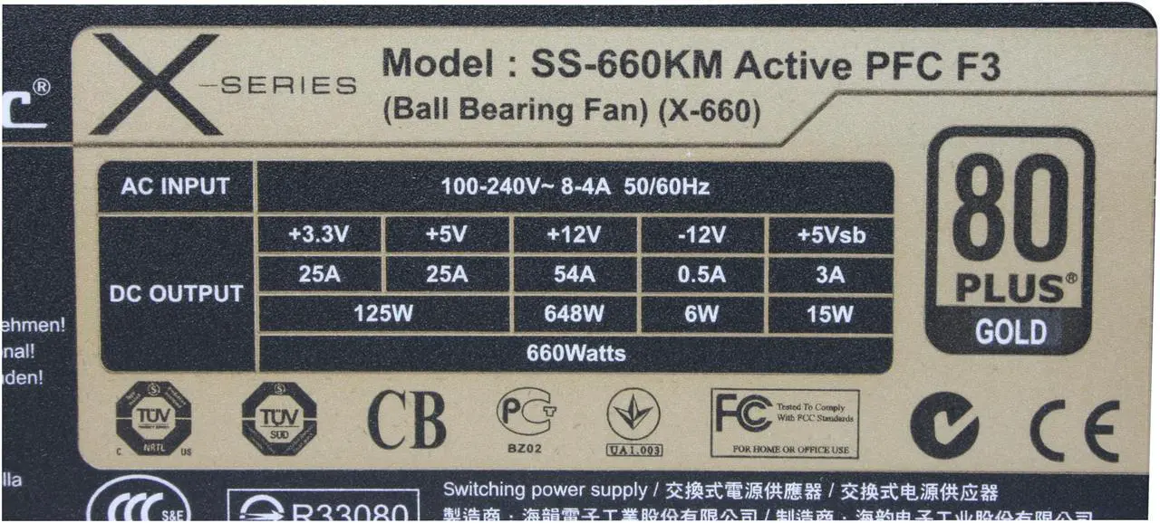 660W Continuous Power with Ample +12V OutputThe Seasonic X Series X-660 delivers 660W of reliable, continuous output to run most systems on the market today. Single strong +12V rail providing up to 54A ensures better graphics card compatibility and maximum provision of 12V power to multi-core CPUs and energy-hungry graphics cards, minimizing the likelihood of overload.