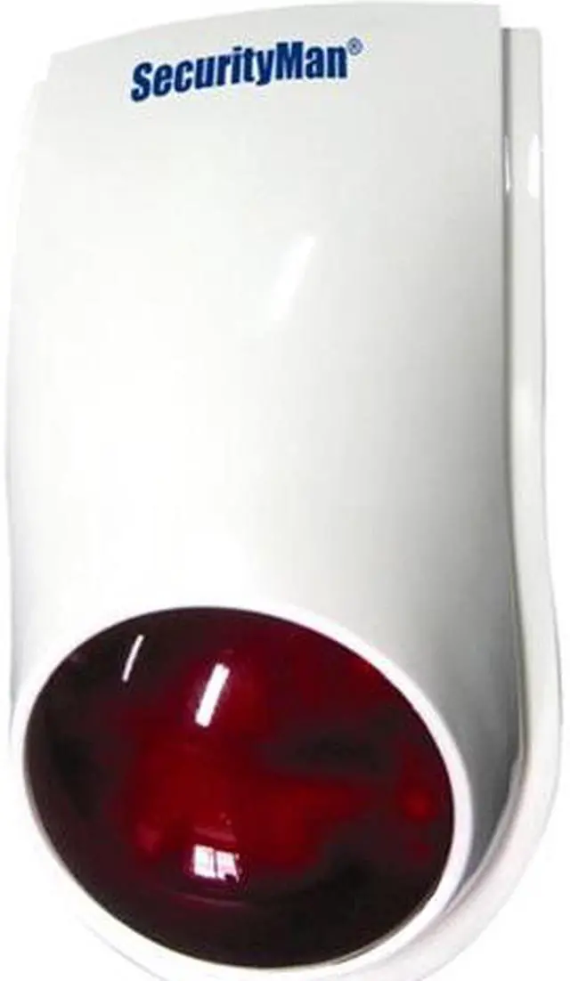 | Features | Operating power : 110~240VAC, 50Hz Siren Sound 120dB Size 202x112x65 (mm) Power Consumption = 40mA Active Power Consumption = 450mA Maximum Alarm Sound with flash : 3 minutes Wireless Transmitting Distance > 300ft (in open area) Built-in 6VDC rechargeable backup battery (up to 100 hours) |