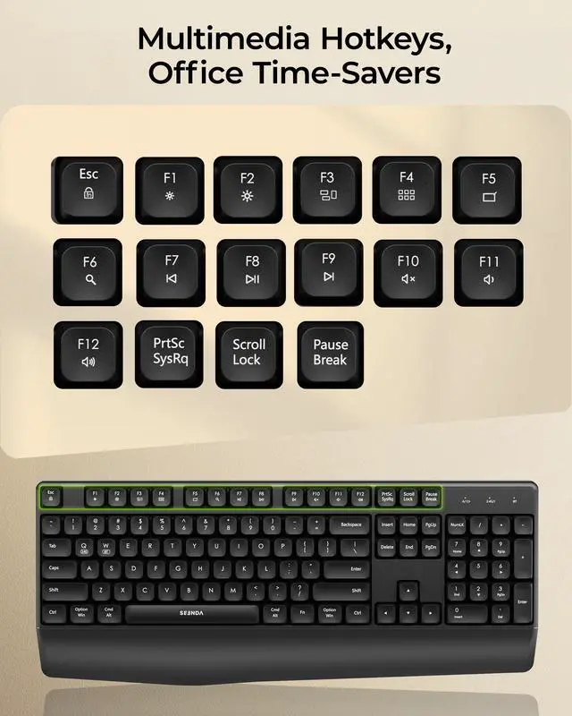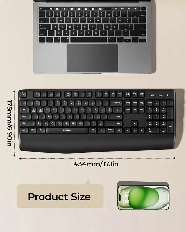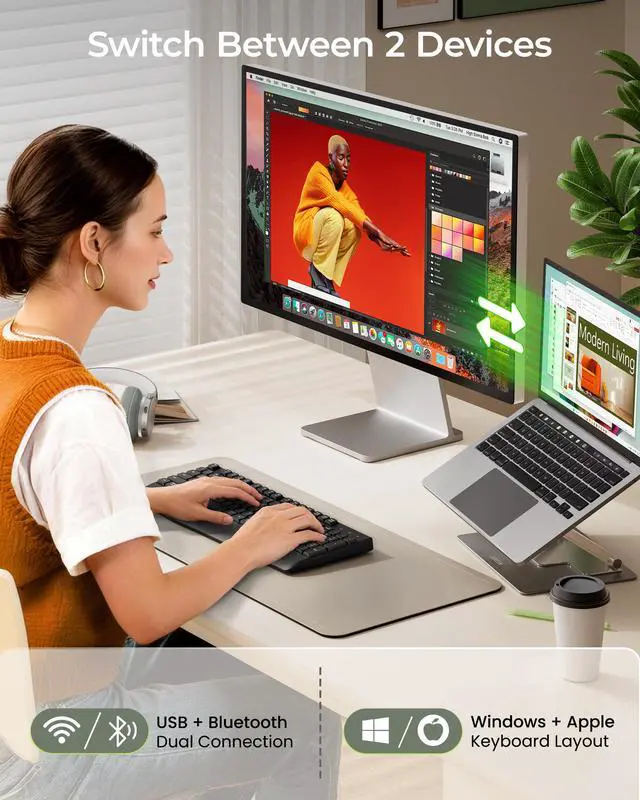 seenda Bluetooth Wireless Keyboard: Two Ways to Connect, Double the Productivity. Use USB for your work desktop and Bluetooth for your home laptop or iPad. This keyboard seamlessly switches between office tasks and study projects, delivering more efficiency with less clutter on your desk.