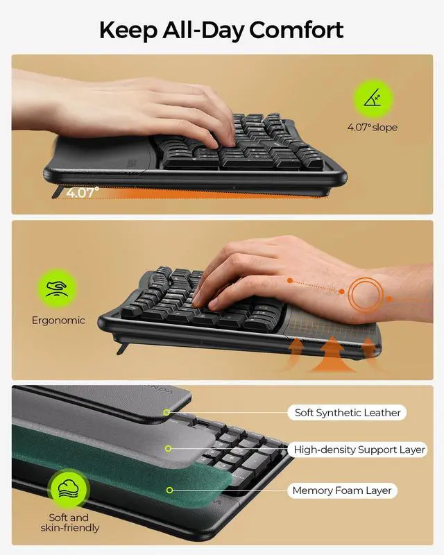 With 5 adjustable tilt settings, customize your perfect ergonomic angle for a truly personalized and comfortable typing experience