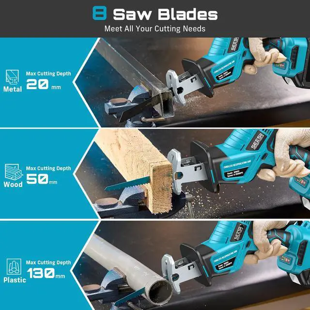 | Included Components | 1 x Cordless Reciprocating Saw, 1 x Gloves, 1 x Glasses, 1 x User Manual, 1 × Storage Box, 2 x 4.0Ah Batteries,1 x Fast Charger, 8 x High-Quality Saw Blades |