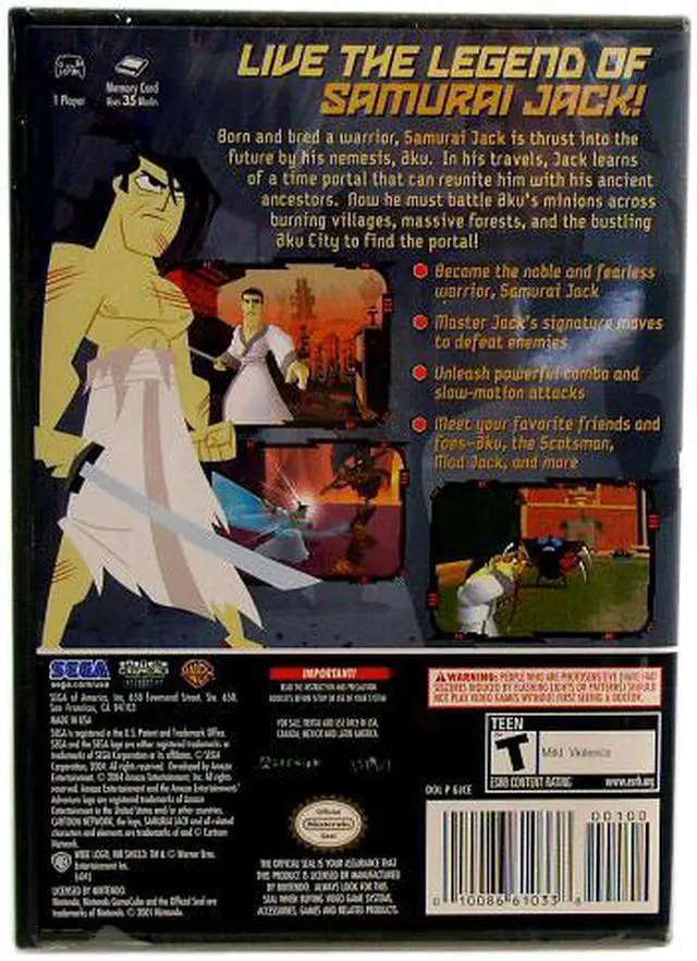 | Features | Thrust into the future by the evil Aku, a lone Samurai warrior must quickly find the time portal to the past to rescue his defenseless people. Ancestors of the displaced Samurai call him "Jack" and help him through four enemy-filled realms with 24 interactive levels. Samurai Jack suffers various states of damage if he fails to dodge fireballs and sword strikes, but slow-motion attacks, devastating combo moves, and sushi snacks empower the hearty warrior. Through a burning village, the bustling Aku City, and on, Jack blasts through doors, finds hidden pathways, and frees caged locals, bringing him ever closer to fulfilling his great destiny - the defeat of Aku once and for all. Defeat enemies with signature combat moves, plus three elemental Swords, Throwing Stars, and a Bow and Arrow. Defeat enemies with Sakai Mode (slow-motion action). Fight against well-known Samurai Jack foes such as Aku, the Scotsman, Mad Jack, and other unique enemies. Select from three difficulty levels to match your gameplay style. Contributions from the cartoon series creator, artists, voice actors, and composers create an authentic Samurai Jack experience. |
