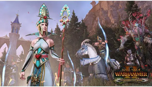 | Feature | The Queen & the Crone is the first Lords Pack for Total War: WARHAMMER II. Bolstering the forces of the High Elves and the Dark Elves, it introduces famous rival characters and new iconic units from the world of Warhammer Fantasy Battles to your campaigns and battles. The content in this pack is available in both the Eye of the Vortex and Mortal Empires campaigns. Two new Legendary Lords... ...with new quest chains, magic items and skill trees New campaign mechanics and objectives New Hero type for High Elves New Lord type for Dark Elves New battlefield units for both races 16 elite Regiments of Renown Background Only in times of the grave peril does Alarielle the Everqueen, the living embodiment of Isha, take to the battlefield. Her eternal duty: to defend Ulthuan and its residents from the depredations of the impure. With a rallying cry, she is joined by the Handmaidens, the Sisters of Averlorn, and the spirits of the woods themselves! Meanwhile, dark acts are afoot in Naggaroth. Crone Hellebron stirs in Har Ganeth, and calls a Blood Night: the slaves are released upon the streets and slaughtered in their thousands. Bathing in the rivers of spilled blood, Hellebron’s powers are magnified beyond belief, with Doomfire Warlocks and Sisters of Slaughter flocking to her banner. The Asur will pay for their eternal treachery - and imminently! |