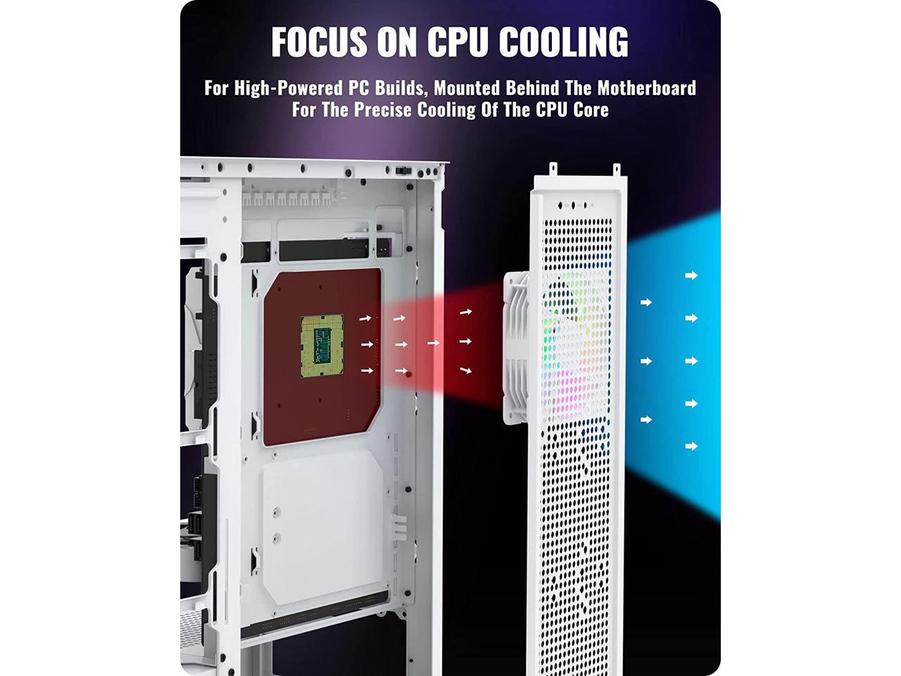 - FOCUSED ON CPU COOLING ATX pc case is suitable for high-powered PC builds and the fan can be mounted behind the motherboard for the precise cooling of the CPU core.