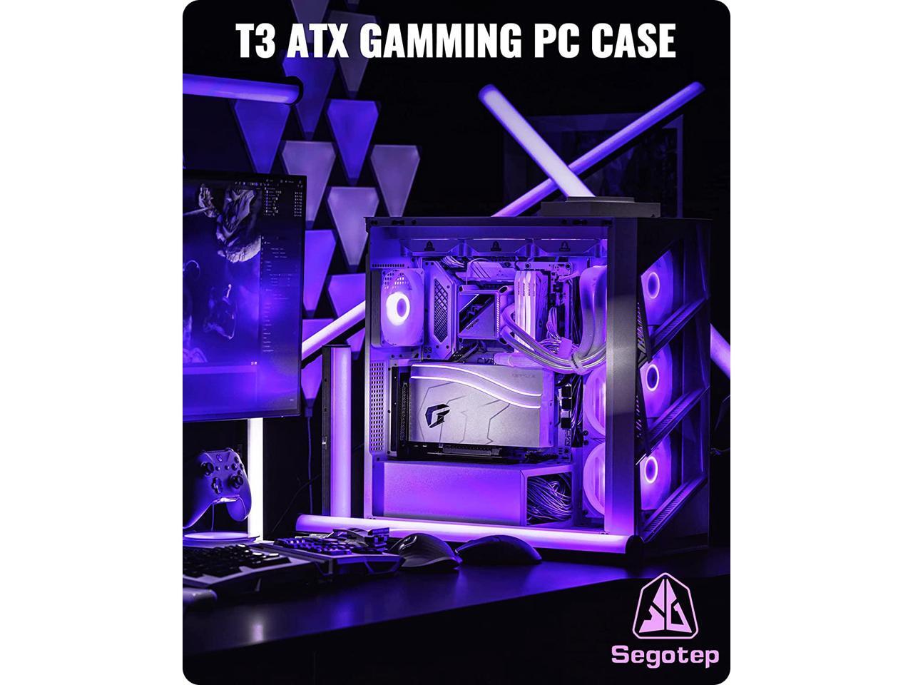 Segotep T3 White Mid-Tower ATX Gaming PC Case w/ ARGB & PWM Fan, Support Top & Side 360mm Radiators, Snap-On Opening & Closing Front Panel, Type-C I/O Port, Tool-Free Disassemble