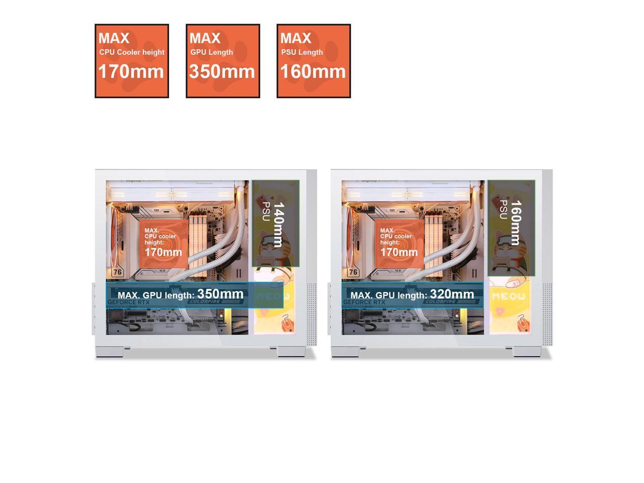- Reasonable and Compact Interior Space:The space inside the MAMPHIS case is designed very reasonably. The motherboard supports M-ATX/ITX. The GPU supports up to 350mm, the CPU supports up to 170mm, and the power supply supports up to 170MM.