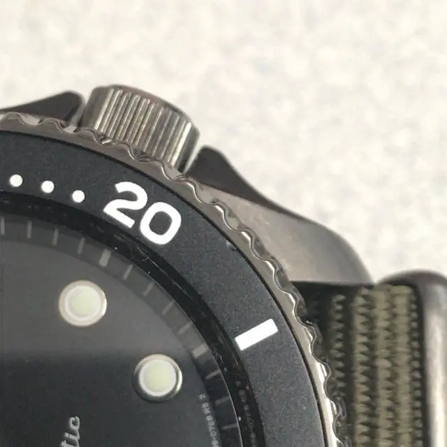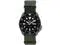 This is a new Seiko automatic 5 Sports watch that features a Seiko 24 jewel automatic (self-winding, hand winds, hacks) movement. The deep black dial has a day and date display at 3:00, highly luminous hands and markers treated with Lumibrite for low light visibility, an offset crown at 4:00, a uni-directional rotating bezel, a Hardlex mineral crystal and an exhibition window screw-down case back. 42.5 mm diameter hard-coated stainless steel case. It comes on a nylon sport strap and it includes manual and Seiko box.