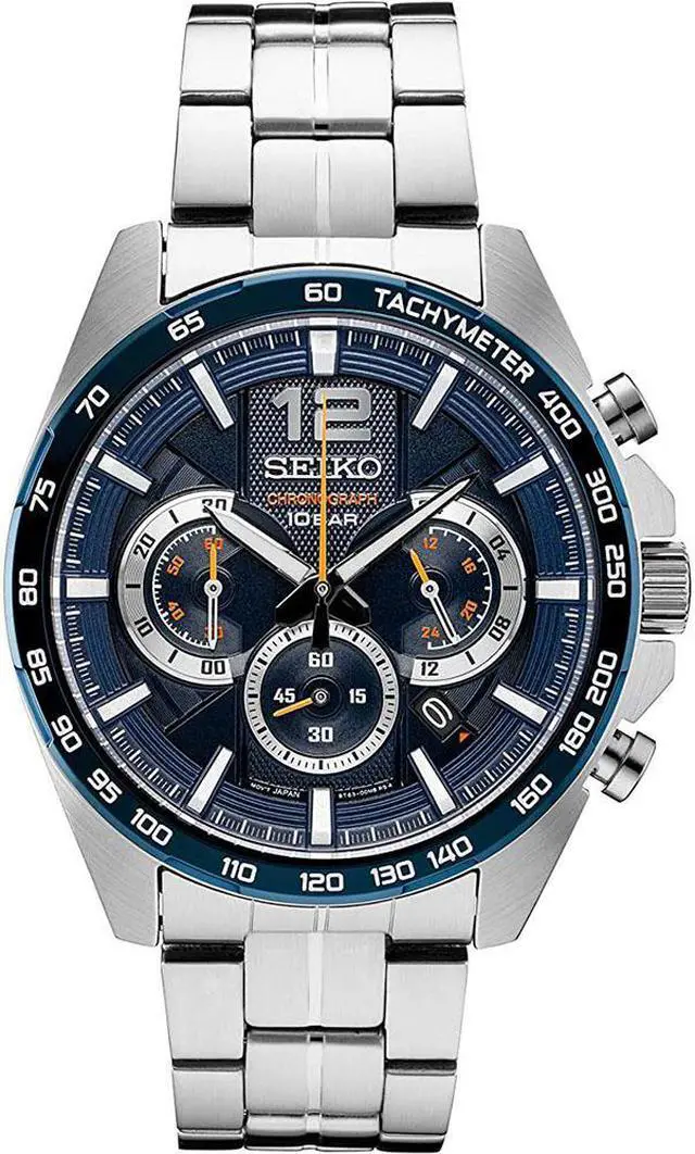Seiko Mens Chronograph Stainless Steel Blue Dial Quartz Watch SSB345