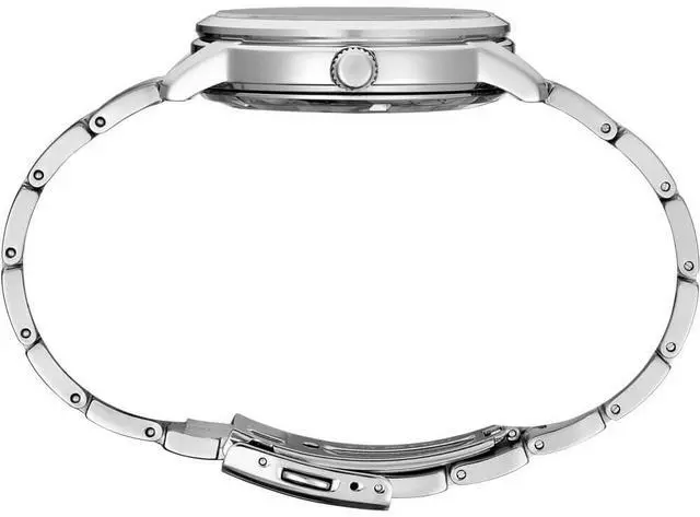 From the Essentials Collection. Adding classic automatic timekeeping to the Essentials Collection, this versatile timepiece winds with the movement of the wearers wrist, and never needs a battery. Visible through the screwdown see-through caseback, the 23-jewel movement beats at a frequency of 21, 600 vibrations per hour, with a power reserve of approximately 41 hours and manual winding capability. With a sophisticated sunray finish, the dark green dial includes a calendar and crisply defined hands and markers. Crafted of stainless steel, with tri-fold push button release clasp. 10 bar, 100M Water Resistant.