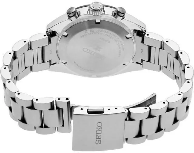 Seiko Speedtimer Solar Chronograph. Designed for those who treat life as the ultimate adventure, Seiko Prospex keeps moving forward, meeting every challenge with technological excellence and winning design. This dramatic watch is part of a high-intensity collection inspired by the 1969 Speedtimer, the worlds first self-winding chronograph. The chronograph function measures up to 60 minutes of elapsed time in 1/5-second increments and includes a split time function, while the solar cell, powered by any light source, with no battery change required, provides a 6-month power reserve when fully charged.
