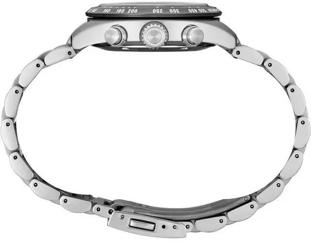 Framed by a black tachymeter bezel, the green sunray dial features 24-hour and power reserve indicators, as well as a date calendar and LumiBrite on the hands, markers and the tip of the chronograph hand. Crafted of stainless steel, this timepiece includes a curved anti-reflective sapphire crystal, secure screwdown caseback and tapered three-link bracelet with tri-fold push button release clasp. 10 bar, 100M Water Resistant.