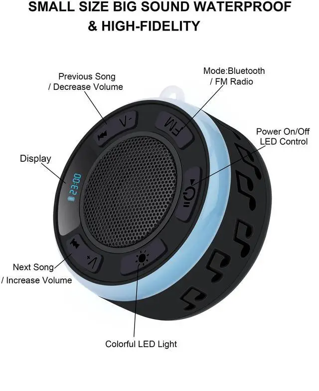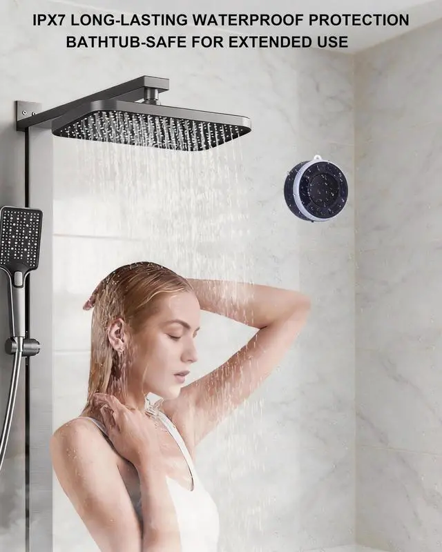 Shower Speaker Bluetooth Waterproof Enjoy clear, powerful sound in your bathroom or shower. This IPX7 waterproof shower speaker delivers immersive audio for daily routines, relaxing showers, pool time or travel.