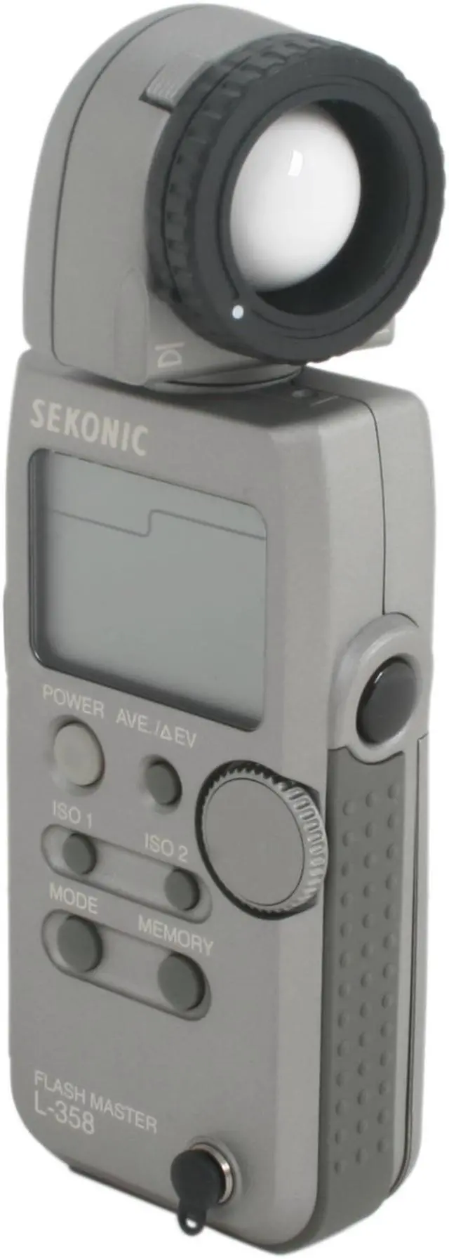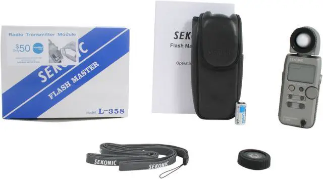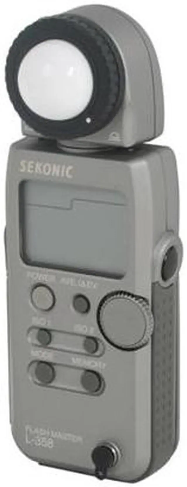 | Features | Exposures accurate down to a tenth-of-a-stop for both ambient and electronic flash light readings (in full-stop mode). Meter can also display shutter-speeds and apertures in half or third-stop increments to mirror the exposure settings on your camera Sekonic RT-32 Radio Transmitter Module installs easily, enabling wireless, Selective Quad Triggering of PocketWizard-enabled electronic flash units up to 100ft away Swivel-mounted head (270-degrees) allows for uninterrupted visual contact with LCD screen from any reading angle Incident readings of three-dimensional subjects are taken using the Lumisphere fully extended, and retract the Lumisphere for selective, narrower-field readings for flat-field objects such as artwork. For reflected readings, a Lumigrid (included) replaces the Lumisphere. Dust-proof and splash-proof (JIS Standard Water Resistance Class 4). Weather-sealed against dust storms, nor'easters, and the occasional rogue wave At ISO 100, the EV measurement range is -2 to 22.9. Aperture ranges from f/1 to f/90.9 with a shutter-speed span of 60-seconds to 1/8000th-of-a-second (1-sec to 1/1000th for flash). For cinema applications frame-rates can be set from 2 to 360 frames-per-second. ISO range can be set from 3 to 8000 in third-stop increments Up to 9 readings can be stored in memory for meter averaging and contrast evaluations in Aperture and Shutter priority modes Includes Lumigrid (Reflected Light Attachment), Carry Case, Strap, synchro terminal cap, CR123A lithium battery |
