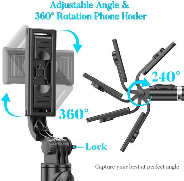 Our selfie stick supports 360° horizontal rotation and 225° vertical rotation, so that you can choose the best angle when you take photos/ videos for the sweet moments.