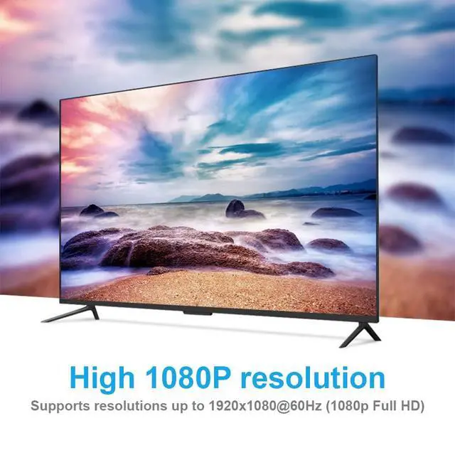 High 1080P resolution: the USB C male to VGA female converter supports resolutions up to 1920x1080@60Hz (1080p Full HD), including 720p, 1600x1200, 1280x1024 for high-definition monitors or projectors.