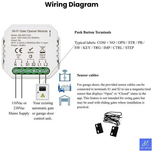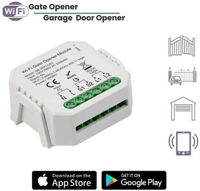 Using a Wi-Fi Gate and Garage Door Opener electronic module, you can open and close your gate, garage door and boom barriers using your Smartphone. You can also share access to your family from the Smartphone app.