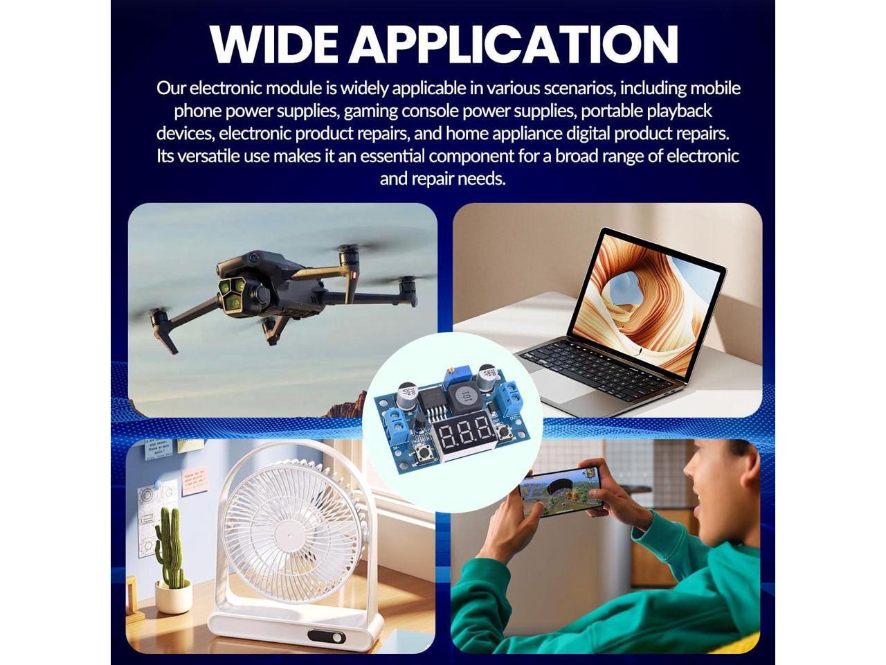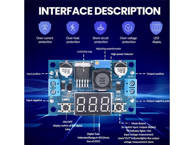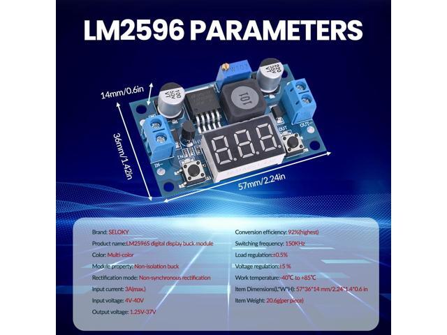 - LM2596 Adjustable Buck Converter: The internal oscillation frequency is 150KHz. It's a second-generation voltage regulator with low power consumption and high efficiency. It's equipped with high-quality solid capacitors to improve the stability and durability of the circuit and filter out high-frequency noise effectively