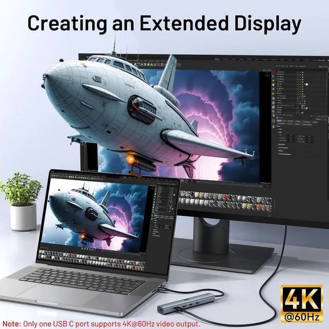 USB C Hub with 4K@60Hz Video Output, 100W PD-IN Charging, 10Gbps Data Transfer for Laptops iPads Phones
