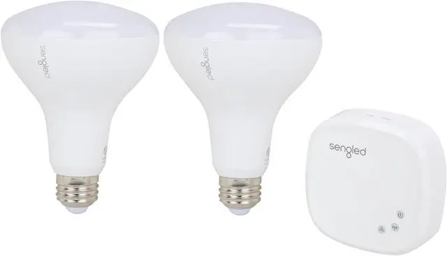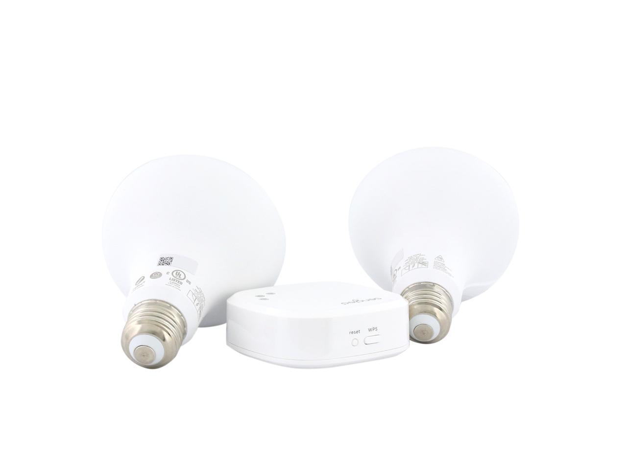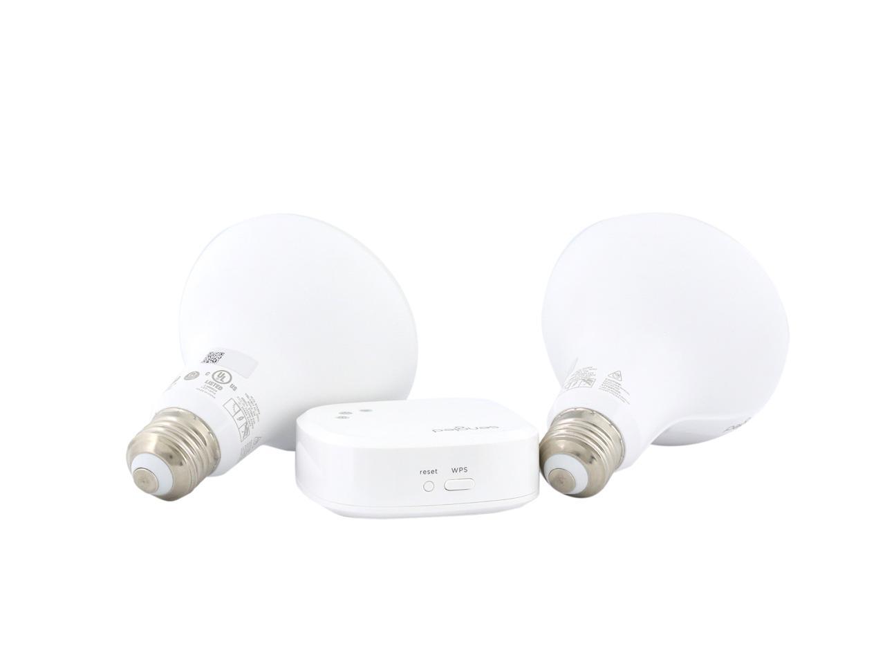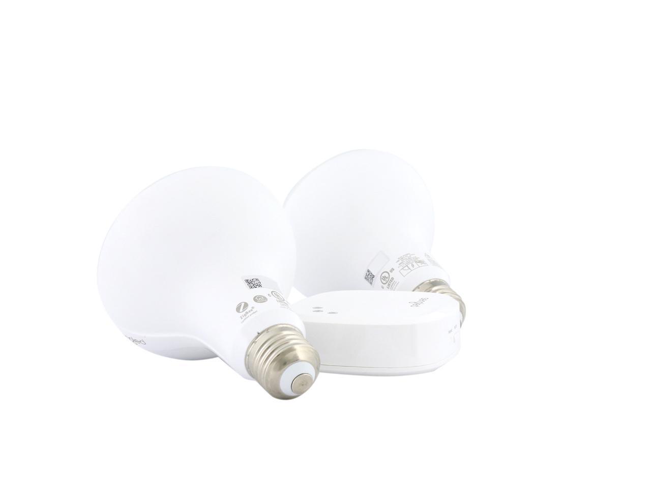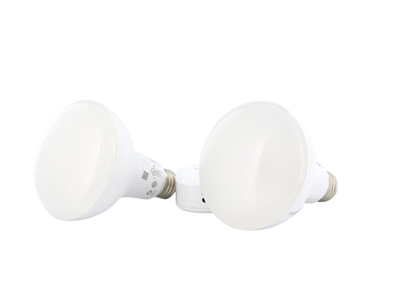 | Specifications | Bulb Type: BR30 Socket Type: E26 Lifetime: 25000 hrs Damp Rating: Damp Power Input: 100-130V AC, 60 Hz Wattage: 9W (bulb) Energy Cost: $1.08/year Power Factor: 0.7 Brightness: 650 lumens Color Temperature: 2700K Dimming: Dimmable with app Cri: 90 Beam Angle: 110 degree Communication Protocol: Zigbee |