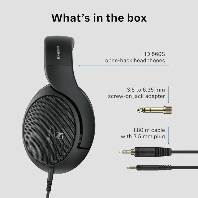 Because audiophiles frequent a variety of sources, we developed the HD 560S to provide an exceptional experience regardless of the playback system. The detachable 3 meter cable (9.8 feet) provides the perfect amount of freedom to access your gear, no matter how it may be oriented within your setup. The 6.3mm / ¼-inch plug lets you connect to headphone amplifiers, audio interfaces, and most hi-fi sources while a flexible 3.5mm / ⅛-inch adapter ensures you can extract the most out of your reference material on portable digital audio players and countless other audio devices.