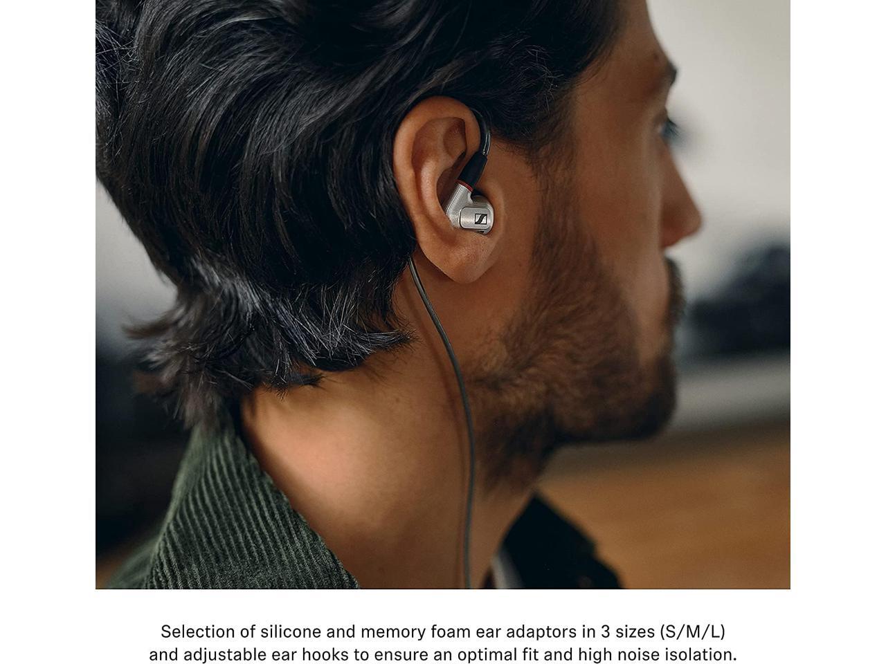 - Selection of silicone and memory foam ear adaptors in 3 sizes (S/M/L) and adjustable ear hooks to ensure an optimal fit and high noise isolation